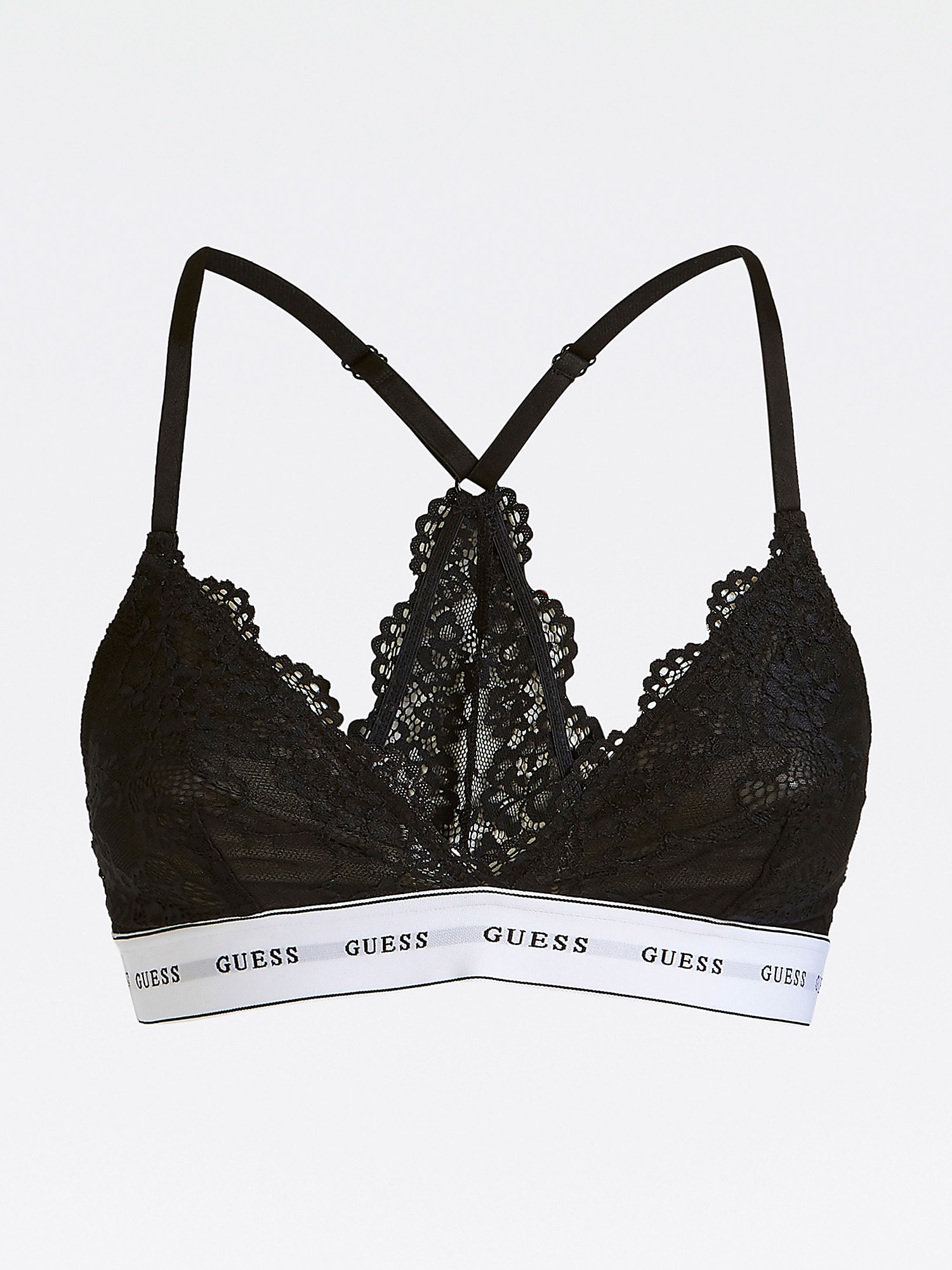 Dámská trojúhelníčková podprsenka Guess v krásné sportovně elegantní kombinaci luxusní krajky a sportovní gumy po obvodu.