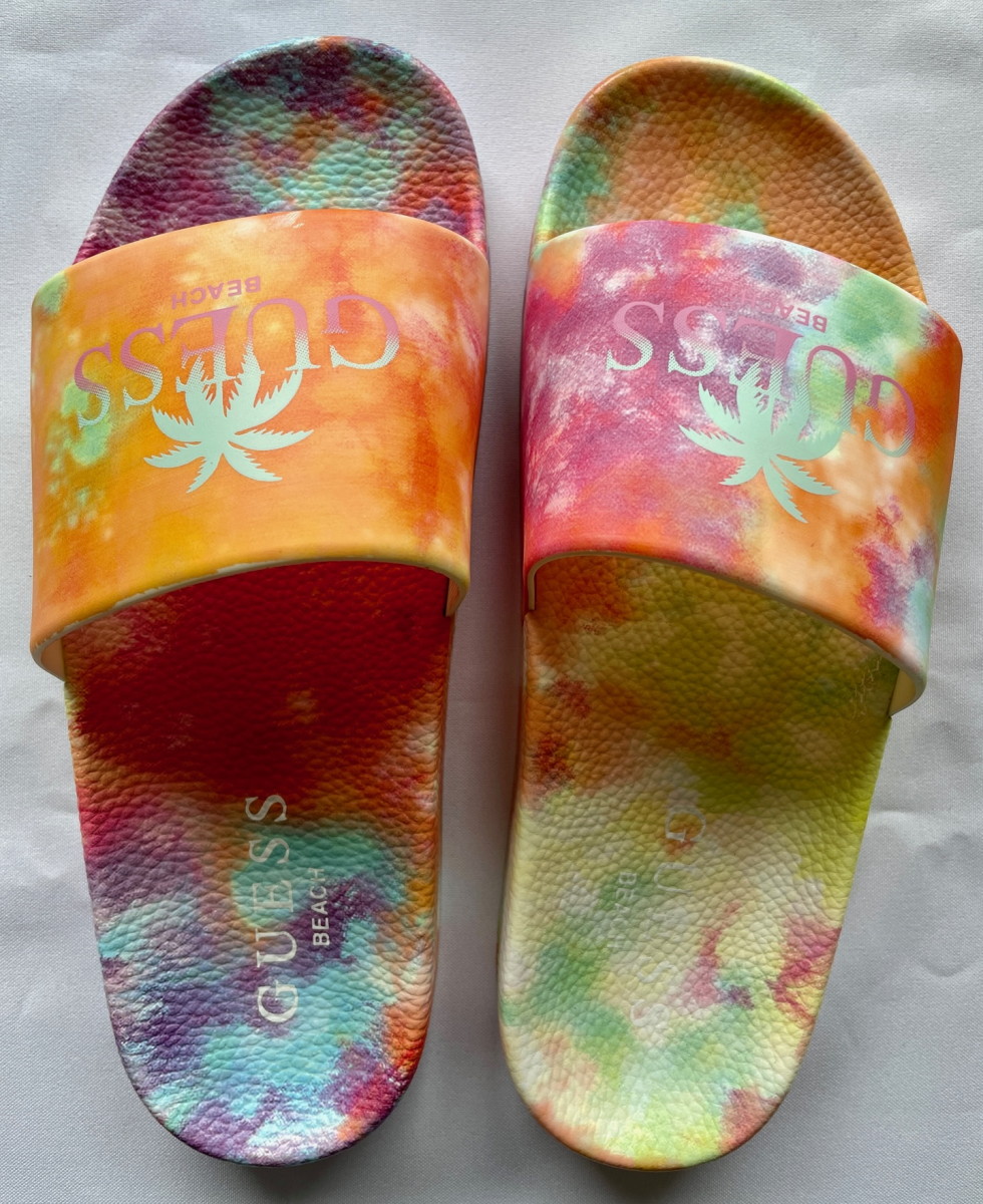 Veselé letní dámské nazouváky Guess Beach z limitované kolekce.